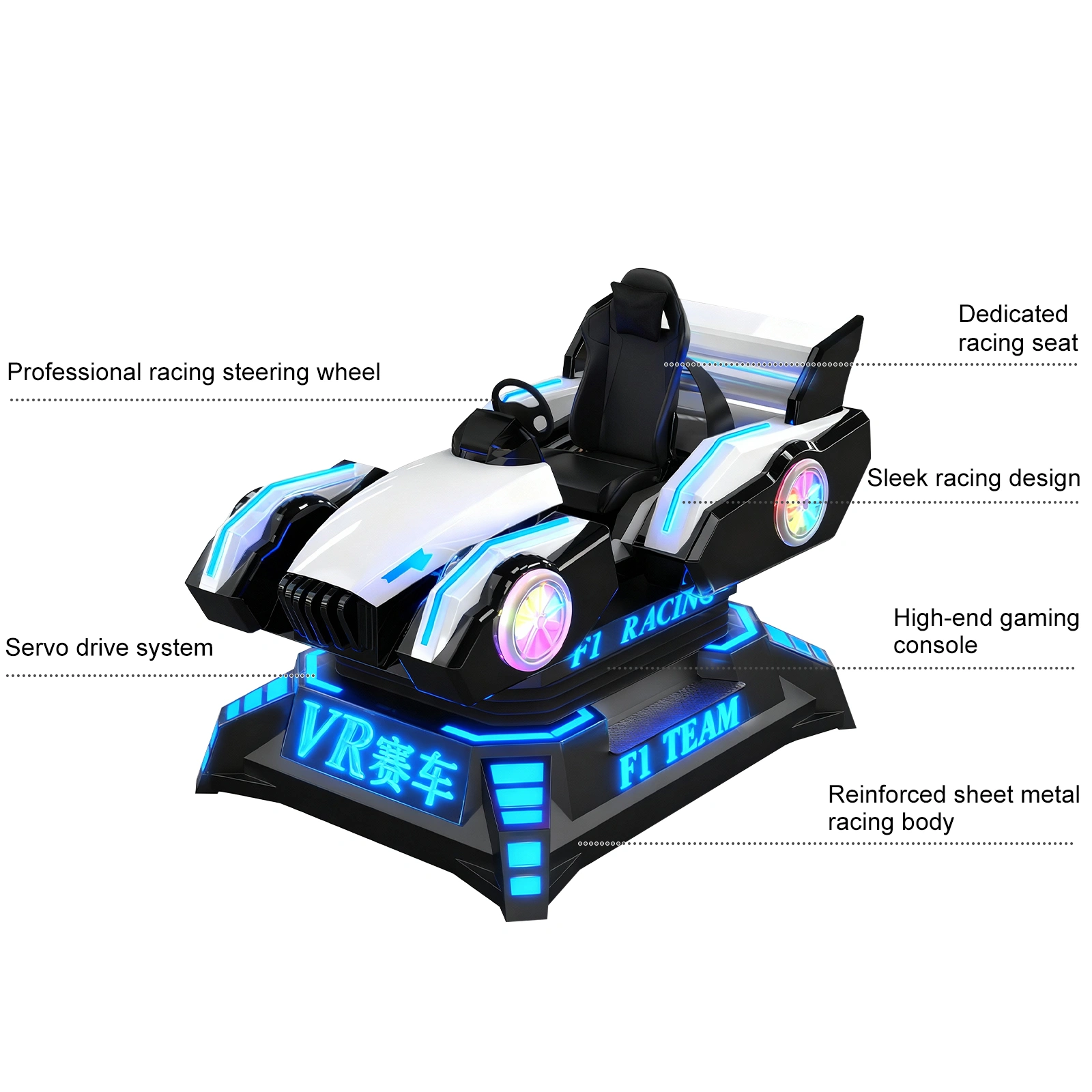 Complete, Ready-to-Operate Arcade Solution: This all-in-one unit integrates a full racing cockpit (seat, force-feedback wheel, pedals), motion base, and VR system into a single, robust cabinet designed for immediate plug-and-play operation in any venue.
