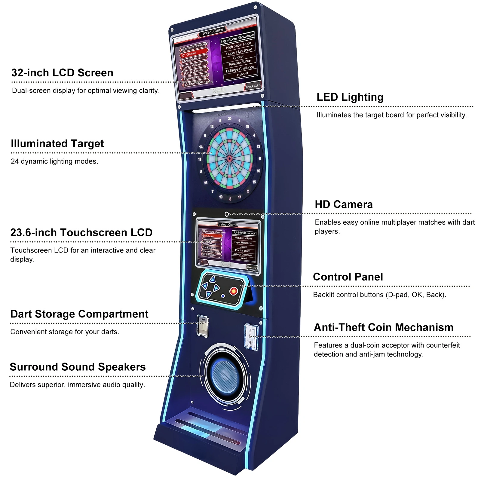 Elevate your bar, pub, or entertainment center with the Championship Pro Dart Machine, the industry-leading fully automatic electronic dartboard system engineered for competitive play, social interaction, and maximum profitability. This is not just a dartboard; it’s a connected sports entertainment platform that combines professional-grade hardware with a global online network, designed to attract crowds, increase dwell time, and significantly boost beverage sales. Create an electrifying atmosphere where patrons compete, socialize, and return for the thrill of the game.Unleash the Power of Global Competition