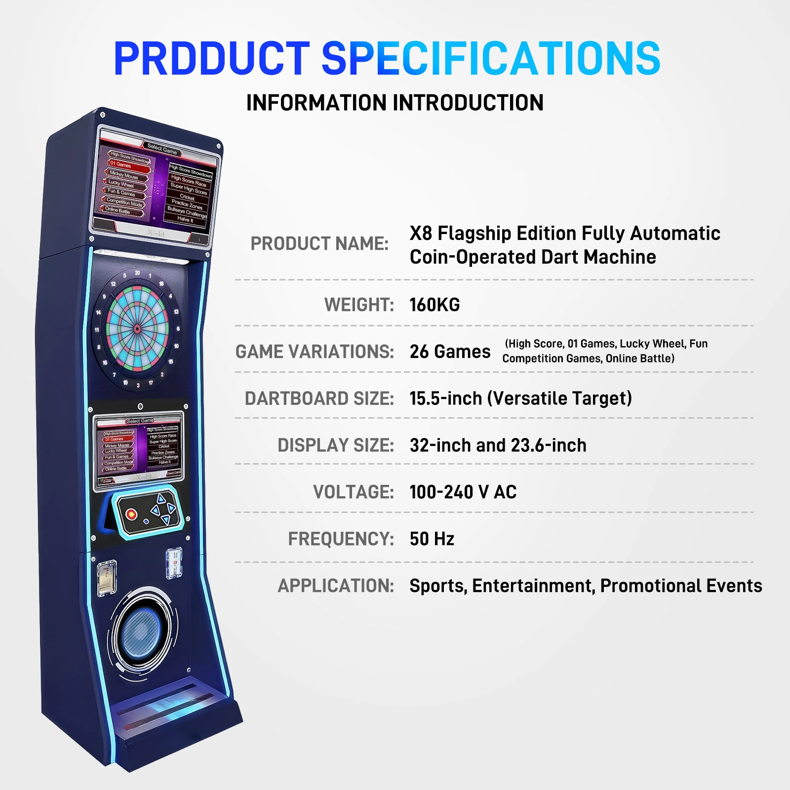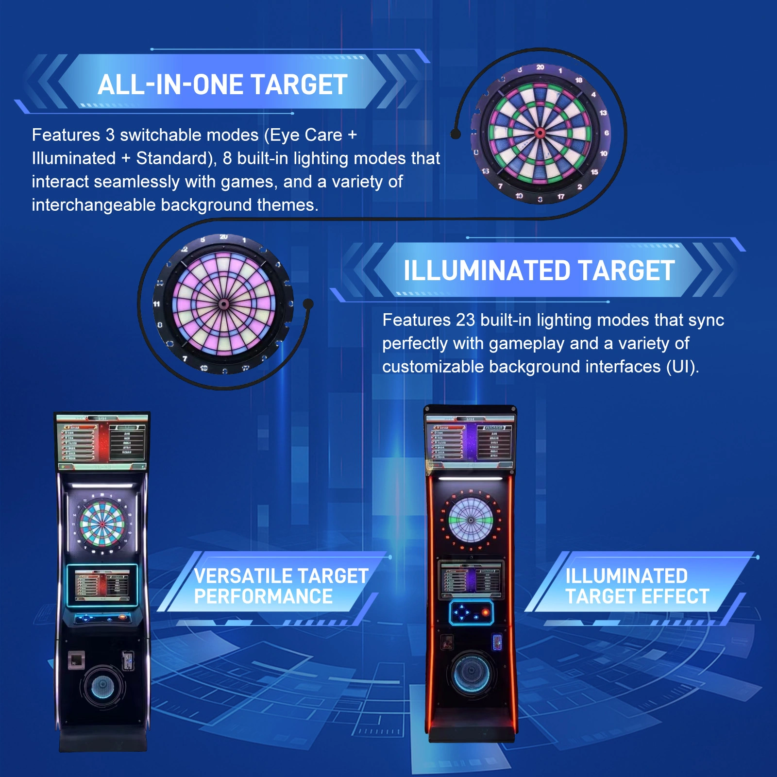 This machine is a proven social catalyst and revenue driver. Its extensive library of games caters to both serious darters and casual players looking for fun. As players engage in friendly (or fierce) competition, they order more drinks, stay longer, and create a dynamic, lively ambiance that attracts more customers. The comprehensive backend management system gives you complete control: set pricing, track profitability per machine, analyze peak play times, and even remotely update game options or run promotional tournaments directly from your smartphone or computer.Technical Specifications: