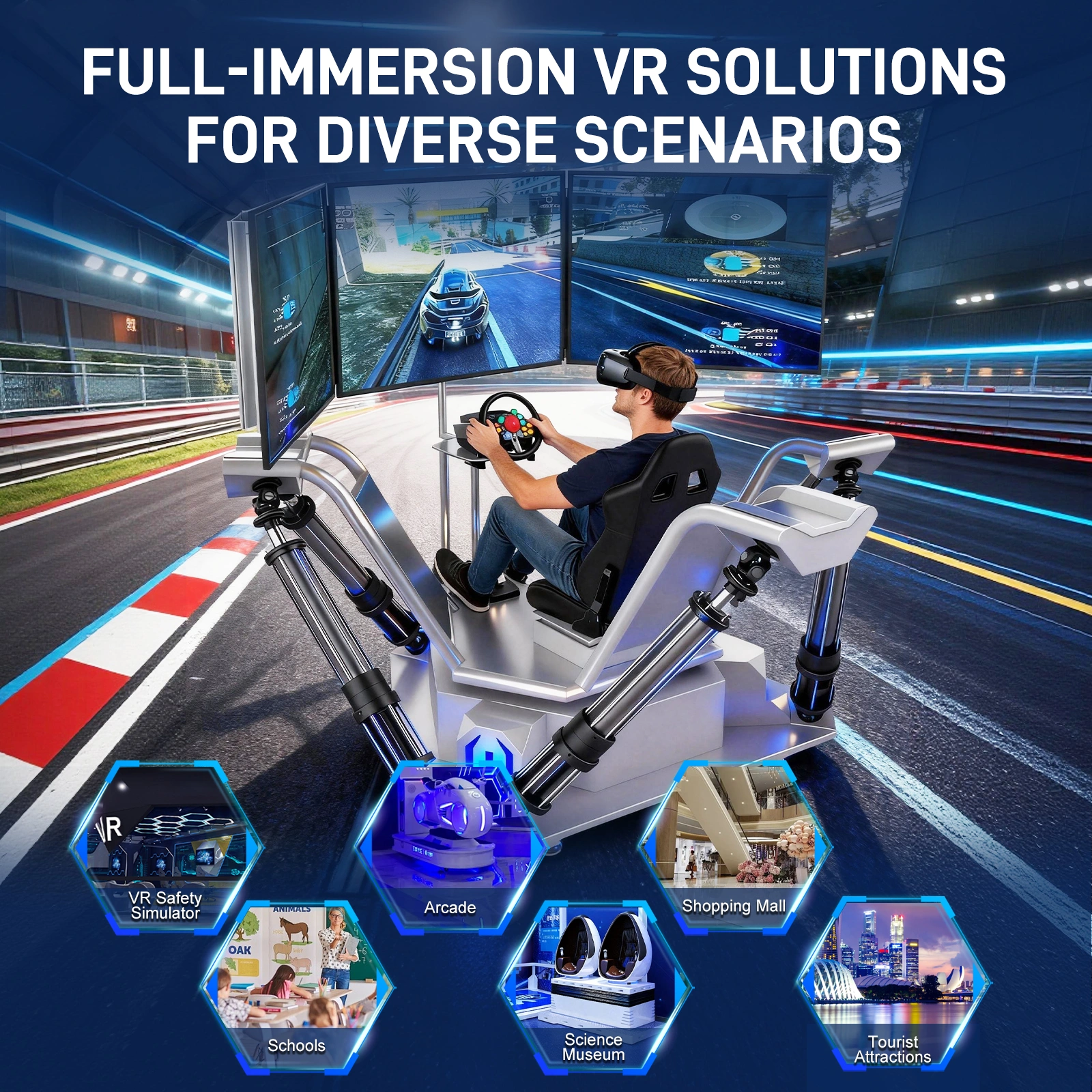 Triple-Screen 6-DOF Racing Simulator & VR Impaired Driving Safety Trainer | Dual-Purpose Commercial Motion Simulator with 200+ Scenarios & Remote Updates