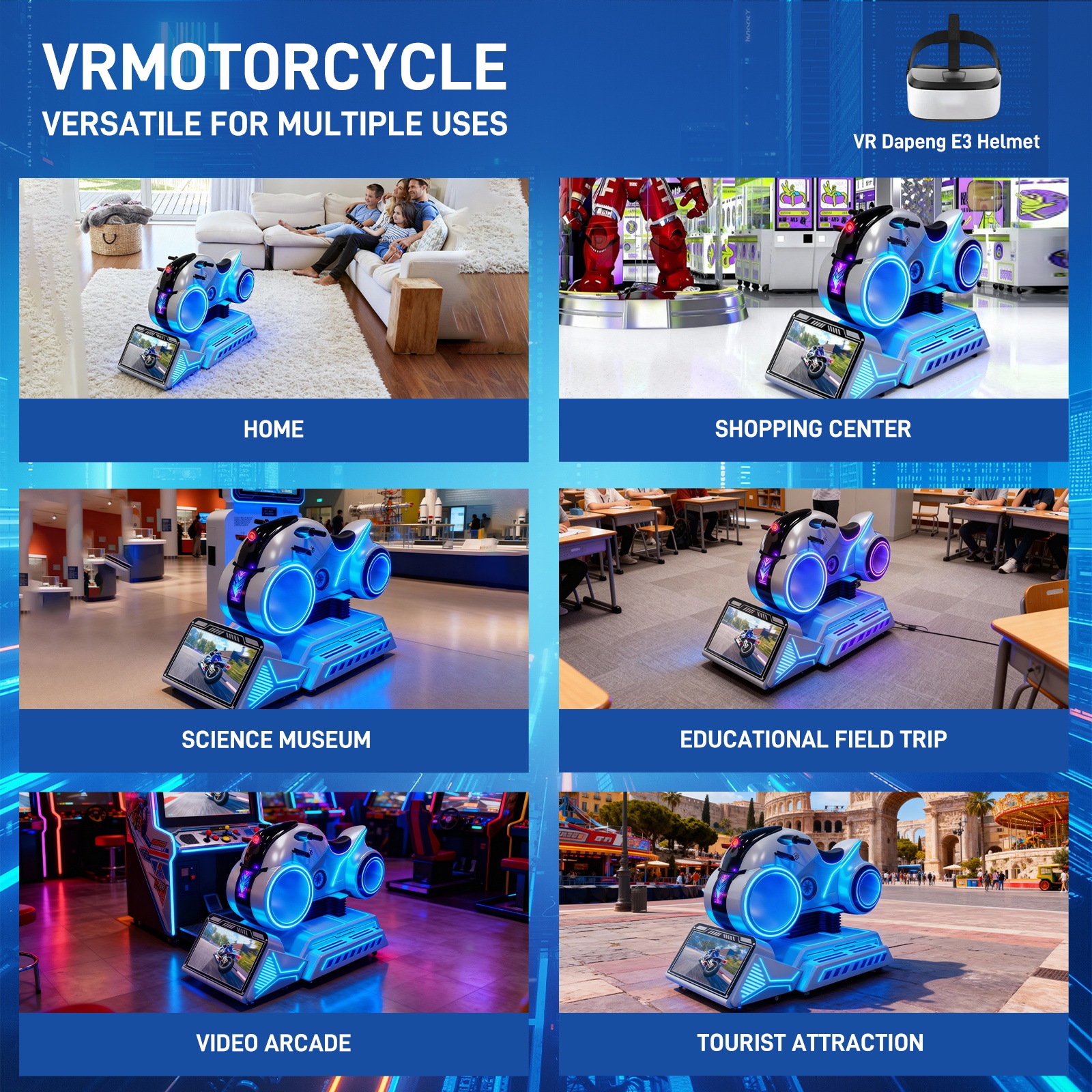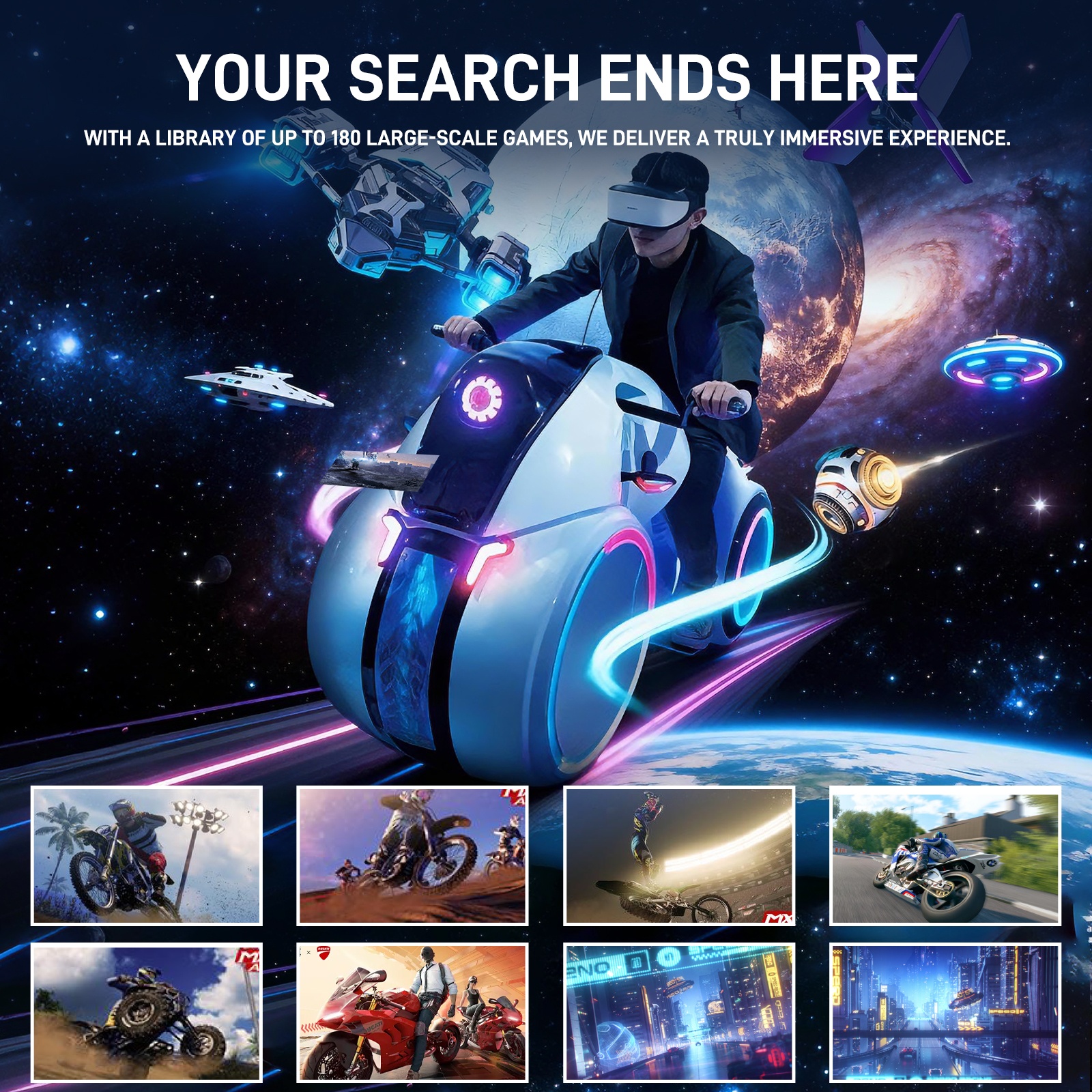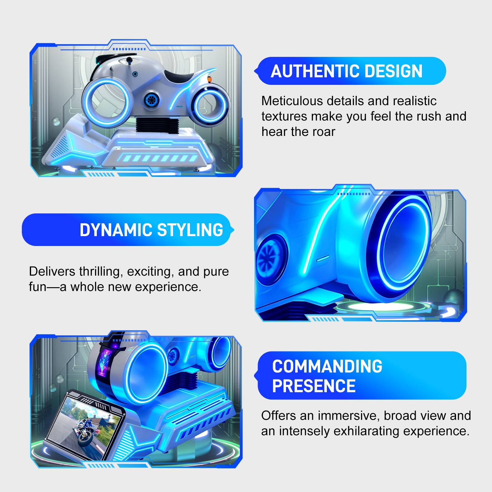 1. Full-Body Immersive VR Motorcycling: Experience the authentic thrill of riding with a realistic motorcycle seat, responsive handlebars, and a full-motion platform that physically tilts and banks with every turn, jump, and lean in the virtual world.