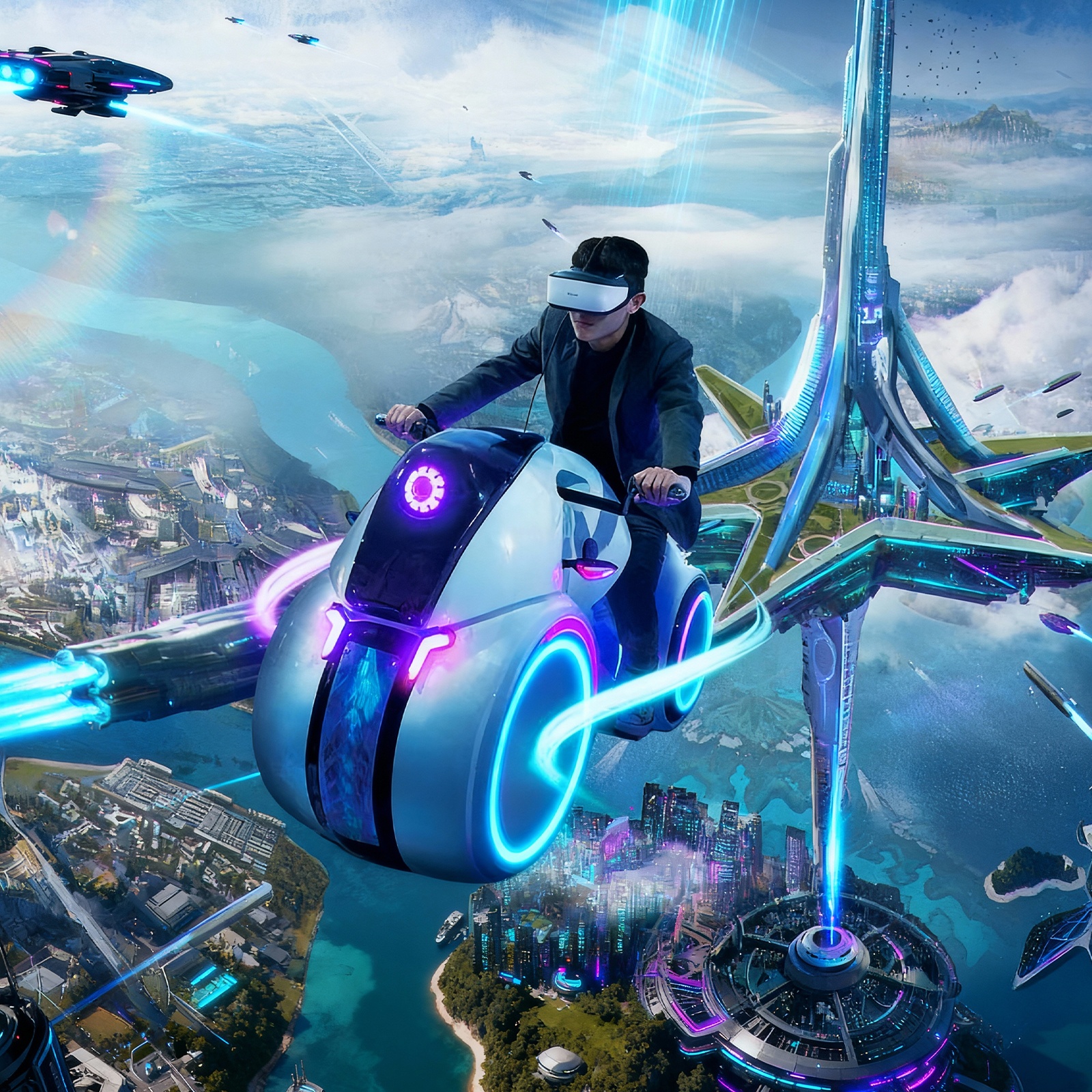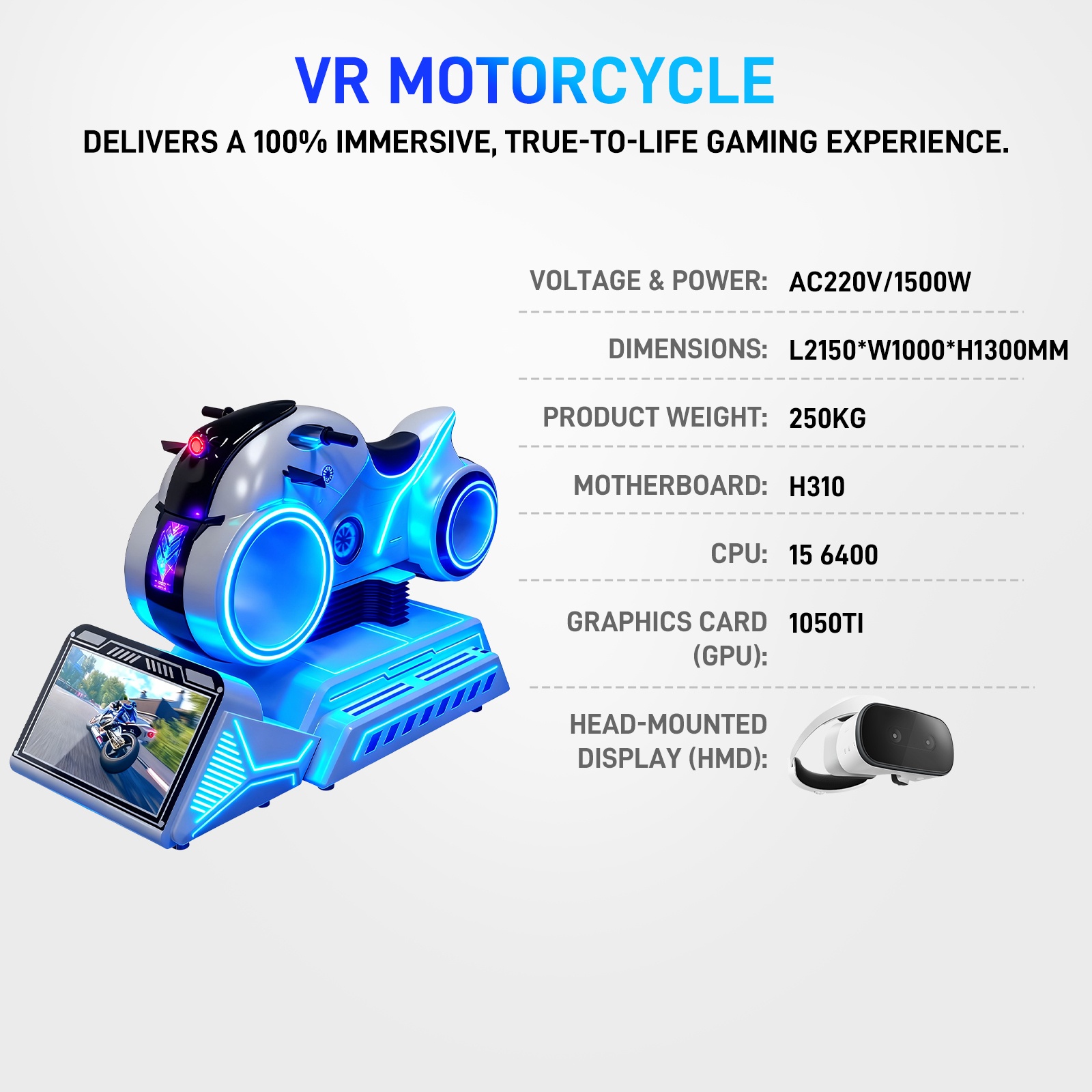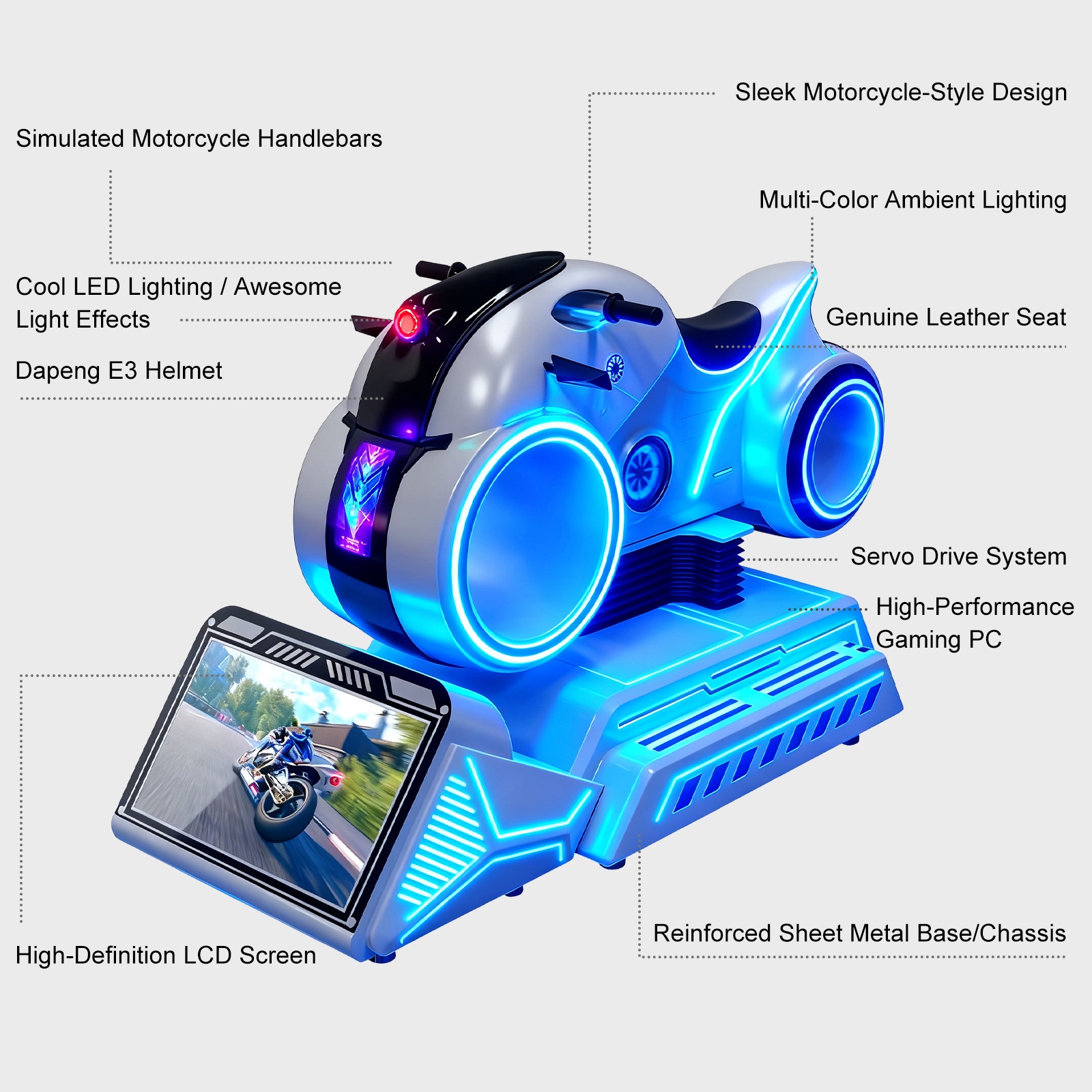 1. Full-Body Immersive VR Motorcycling: Experience the authentic thrill of riding with a realistic motorcycle seat, responsive handlebars, and a full-motion platform that physically tilts and banks with every turn, jump, and lean in the virtual world.